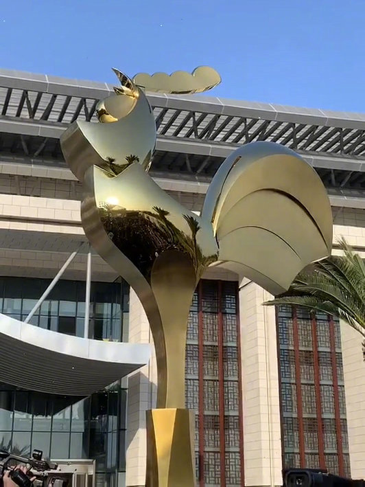 第32届中国电影金鸡奖的奖杯设计随着电影节开幕曝光,与屹立在金鸡百花电影节主场馆前的金鸡雕塑采用同款设