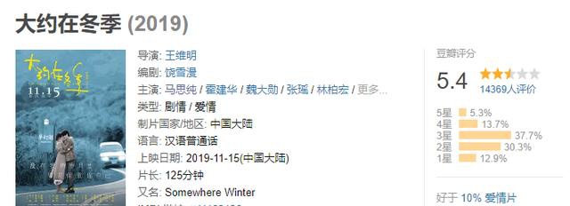 上周末上了部新电影《大约在冬季》,光听这名字就感觉很应景,刚准备去看一下,就被这评分给立刻劝退了。