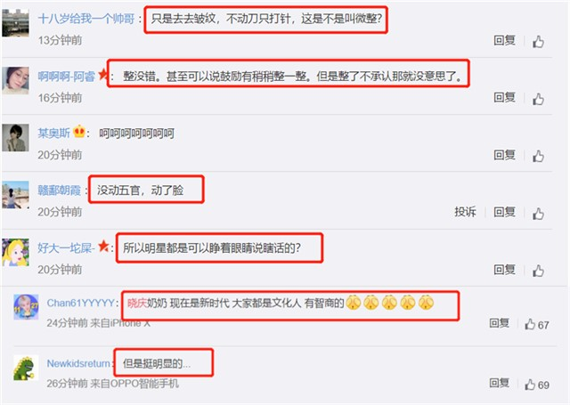 不过对于刘晓庆就整容一事的回应,网友们都表示不相信,纷纷留言称:“整没错,甚至可以说鼓励有稍微整一整,但是整了不承认那就没意思了”、“所以明星都是可以睁着眼睛说瞎话的?”、“没动五官,动了脸”,你们觉得她整了吗?