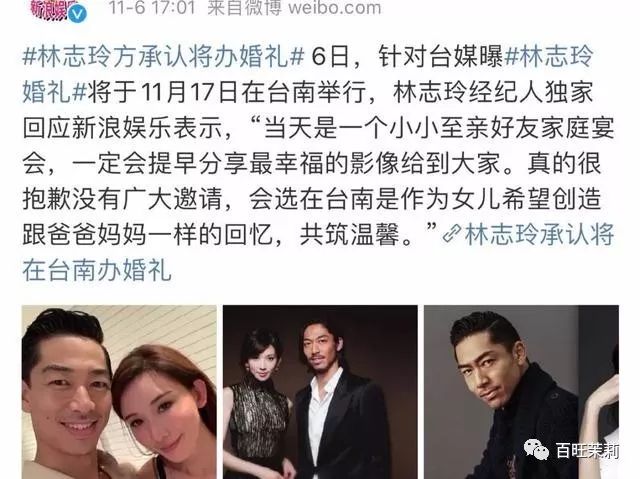 11月17日,一代直男女神志玲姐姐,在台南和老公黑泽良平正式举办了婚