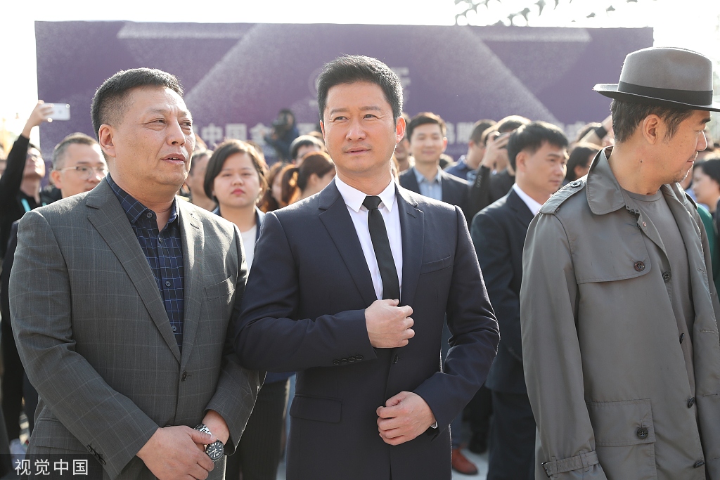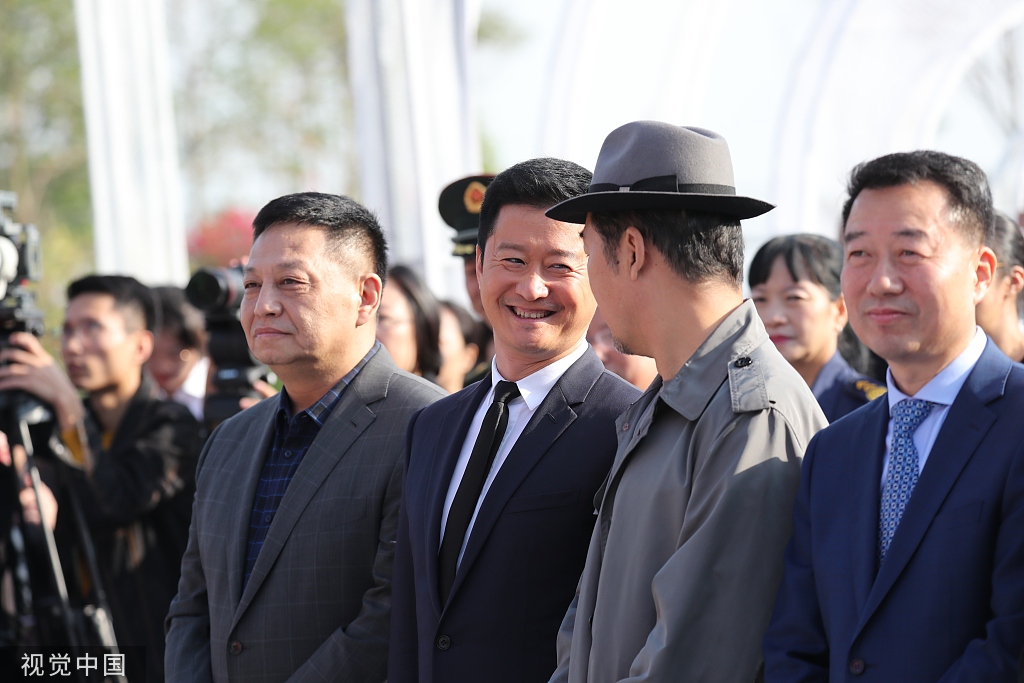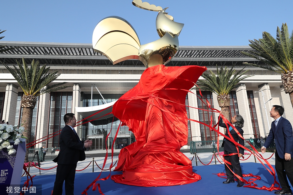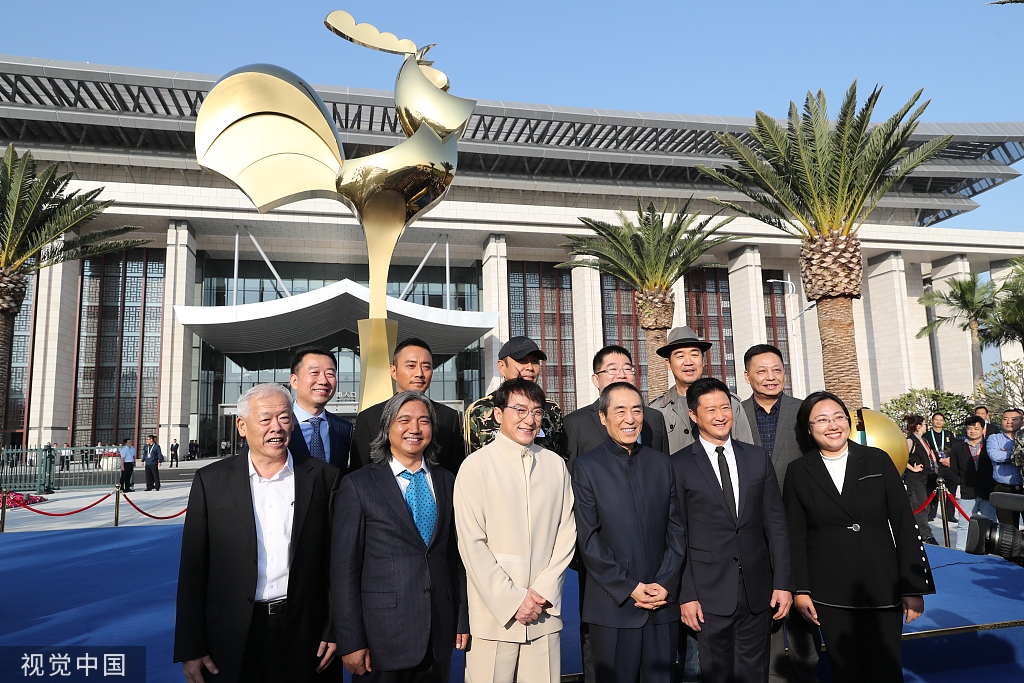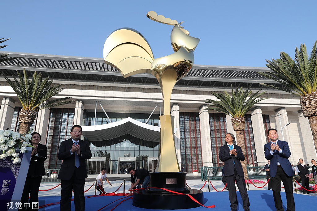 2019年11月19日,厦门,第28届金鸡百花电影节,海峡大剧院(会展中心B8B9)前广场举行电影节金鸡雕塑揭幕仪
