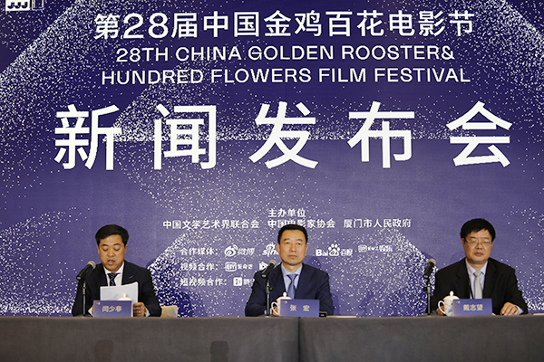 11月19日,第28届中国金鸡百花电影节新闻发布会在举办地厦门召开。中国影协分党组书记、驻会副主席,第28届中国金鸡百花电影节副主席、组委会主任张宏,中国电影家协会分党组副书记、秘书长闫少非,厦门市委宣传部副部长戴志望莅会发言。自今年4月间传出中国金鸡百花电影节将在未来五届十年正式落户福建省厦门市这一消息后,本届中国金鸡百花电影节就备受世人瞩目。