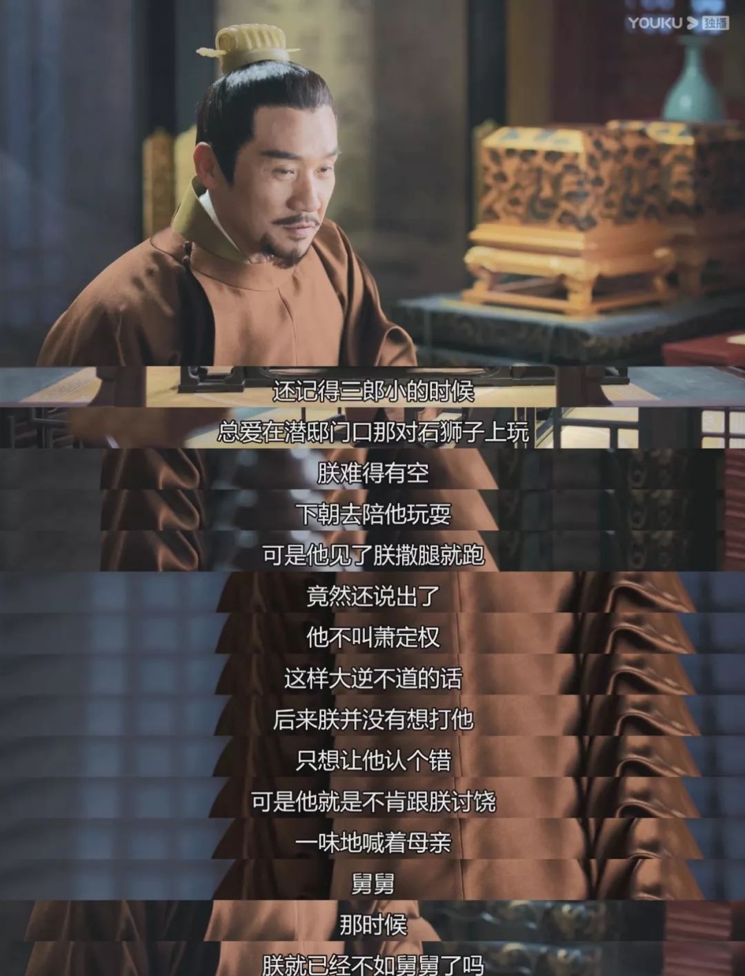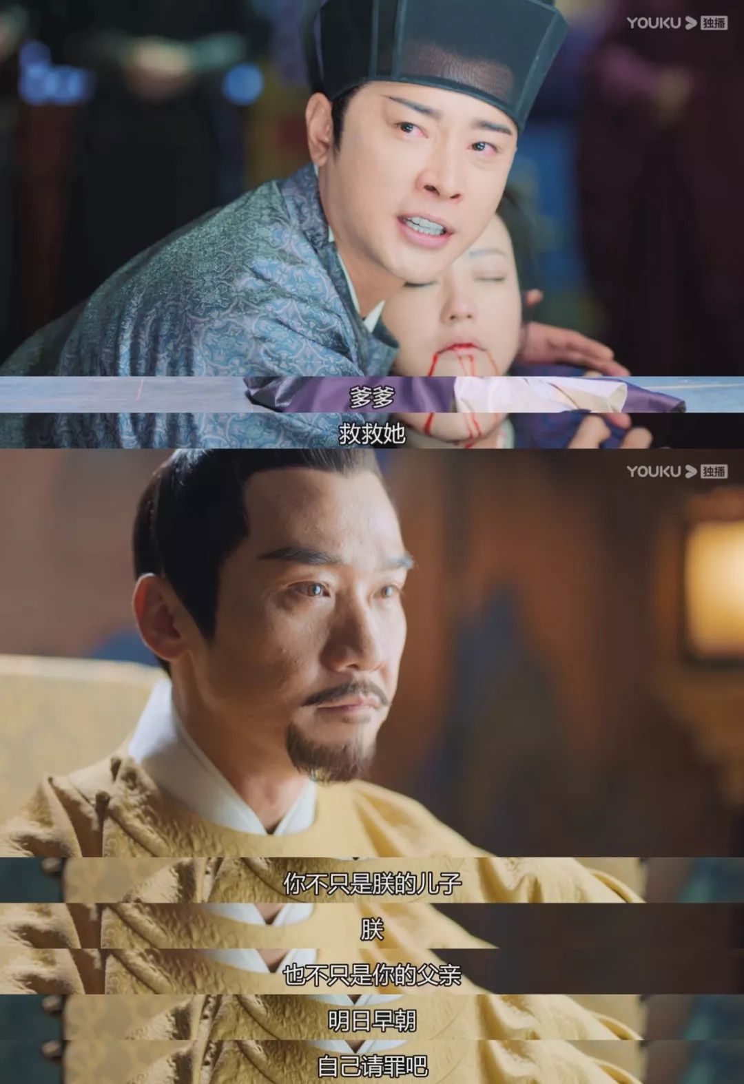 ▲同样是儿子的一声爹爹,萧睿鉴对太子却没有父子之间的宽容,而是告诉他,两人之间更多的是君臣的担当。