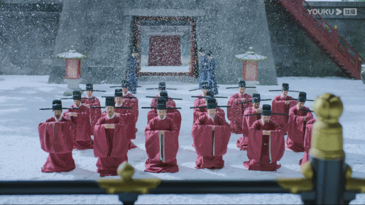 ▲剧中还有一些用心的服装造型考究,比如中书令穿的方心曲领和貂蝉冠式样的官服,是在宋朝的画卷上有史可考的,而侍女的叉手礼,描摹自古代壁画,不愧是张叔平来做的美术指导。