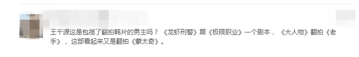但是我们也发现了有网友指出电影疑似翻拍韩国电影,同时也有网友表达出对主演王千源的一点调侃。