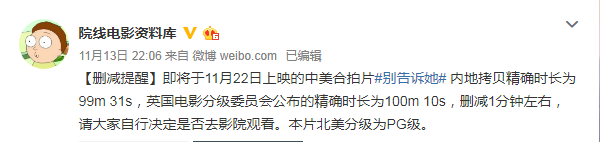 具体是否为删掉贴片预告,现在还没有详细情况。不过大多数网友推断,电影中有一场饭桌戏可能会引起部分人的不适,极有可能在这里做出删减。