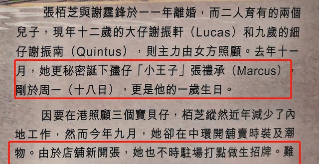 11月19日,根据香港媒体的最新爆料,张柏芝因为刚刚开了新店,女神忙着看店,甚至把接儿子的重任交到了弟弟张豪龙身上,现年12岁的大儿子Lucas也因为妈妈忙着做生意,减少了母子的相处时间,所以谢霆锋大儿子一个人孤独放学看起来有些不开心一脸愁