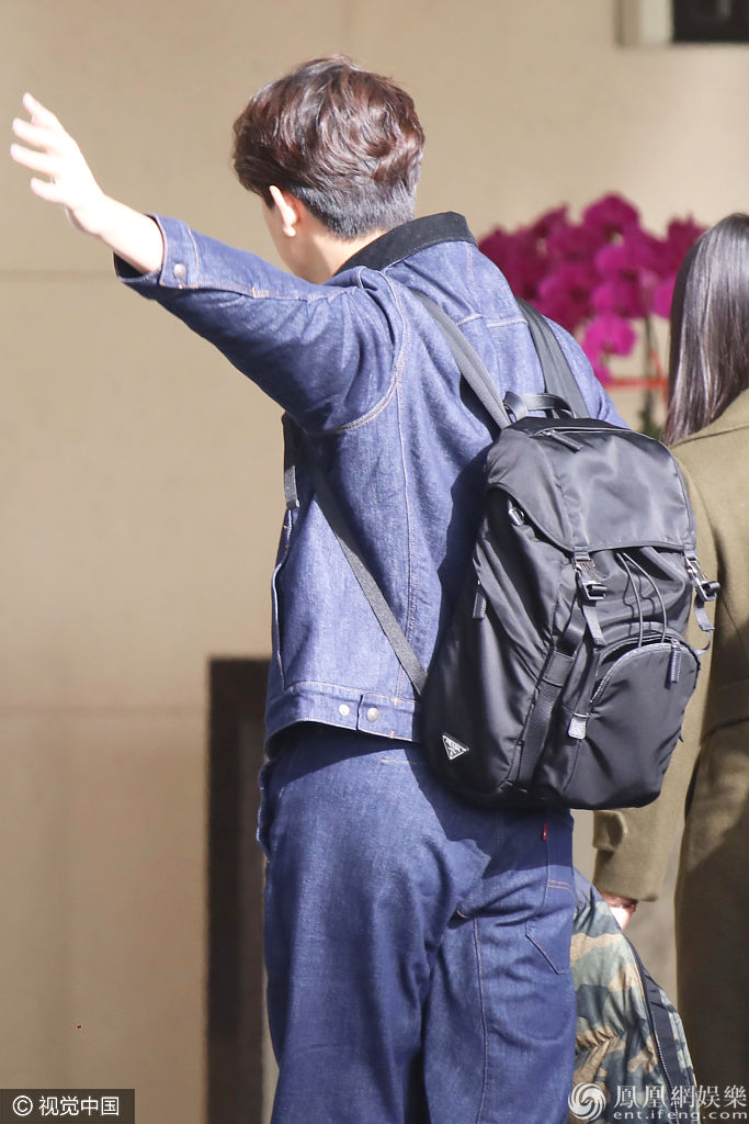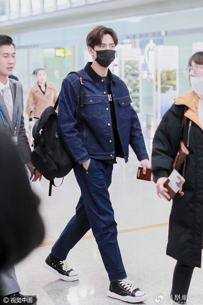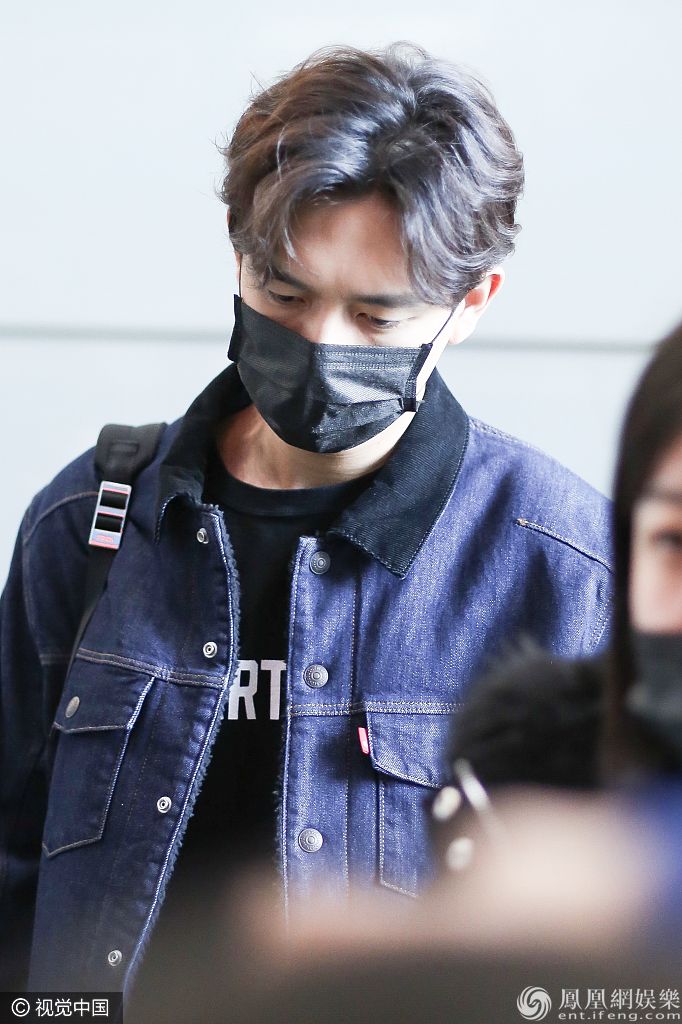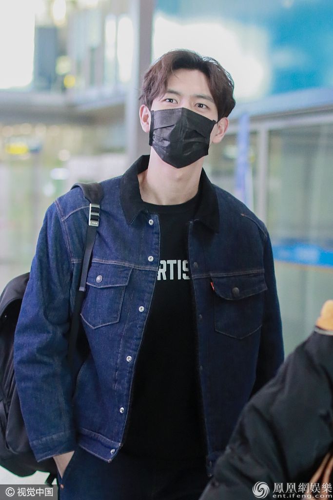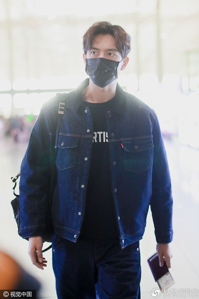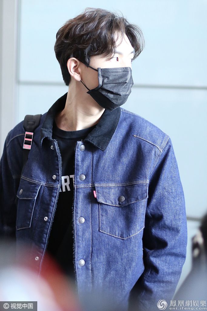 2019年11月18日,北京,李现现身北京机场,他身穿牛仔套装搭配中分韩式短发,造型温暖帅气,一路口罩遮面前行直到最后一秒摘下口罩露出甜笑,实在太宠溺了。 图片来源:签约供稿人/视觉