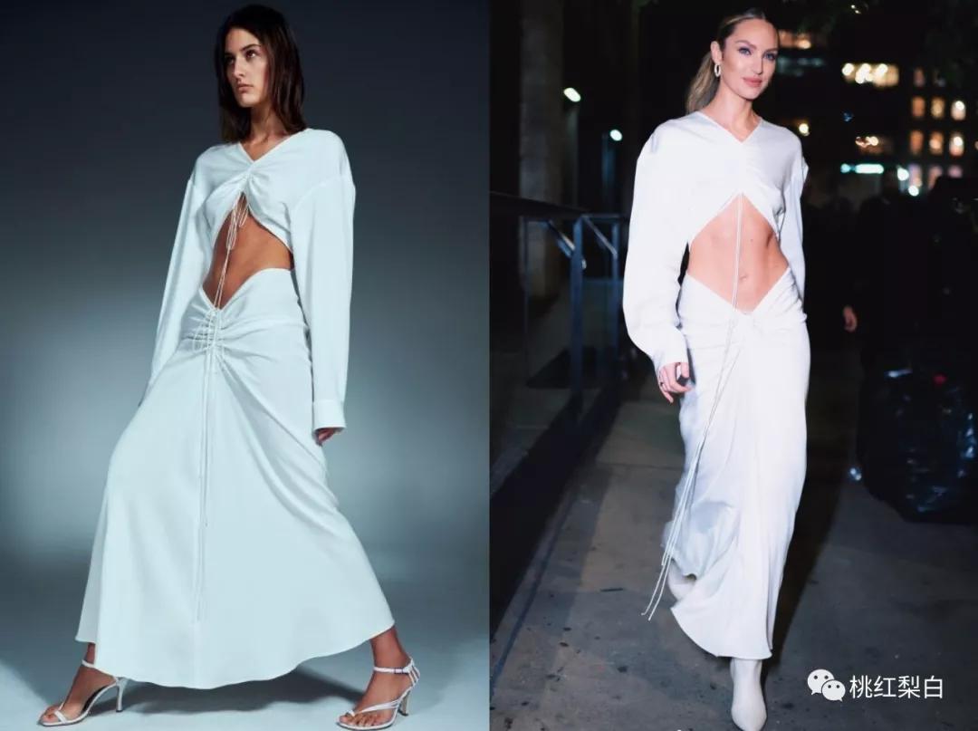 Christopher Esberde 这套裙装,第一眼看就觉得“也太难穿了!”但是遇上Candice这种常年自律健身的好身材,瞬间就变成扮靓利器脱颖而出了,对比模特照来来看,这一回是妥妥的“买家秀”赢了。
