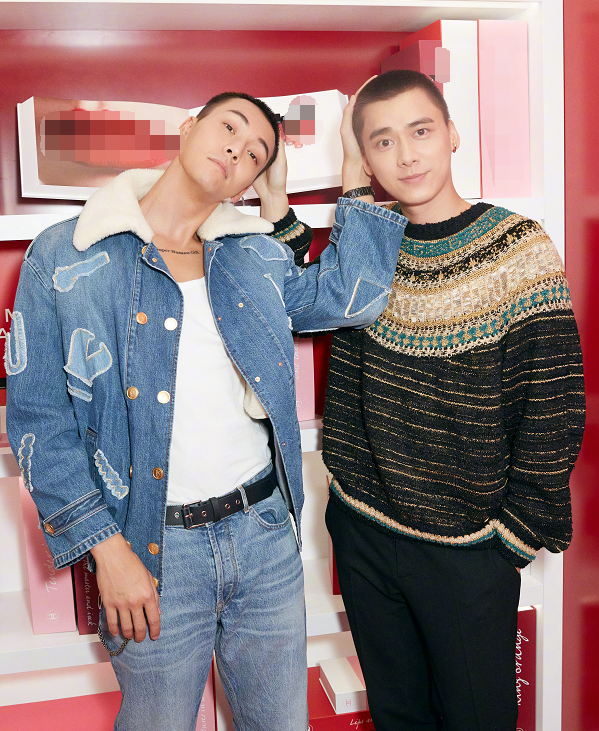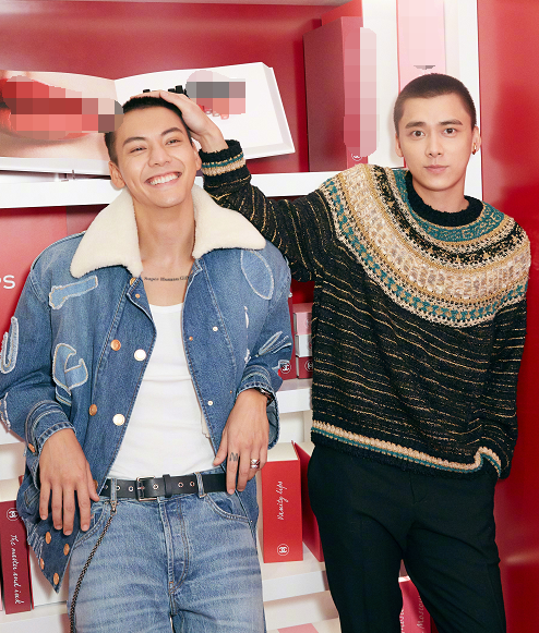 陈伟霆和李易峰共同出席某活动,两人都剃了寸头,现场相互摸头,逗趣有爱。
