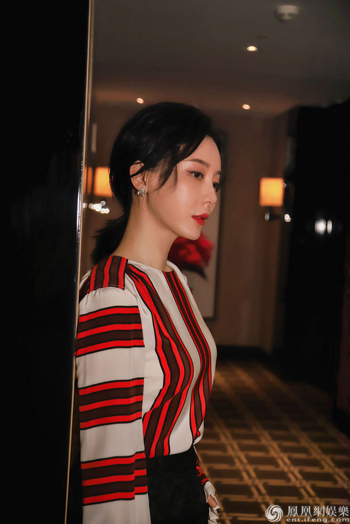 陈数口涂红唇穿条纹衬衫气场全开美又飒。 图片来源:视觉中国