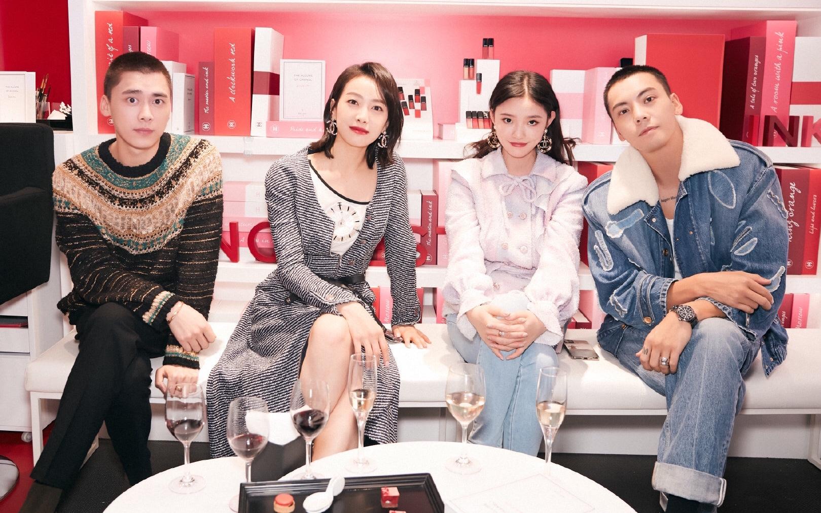 陈伟霆、林允、宋茜和李易峰四位当红偶像一起合照,颜值颇高,但又各有特点。两位女生坐在照片中间,林允负责甜美,宋茜负责优雅。