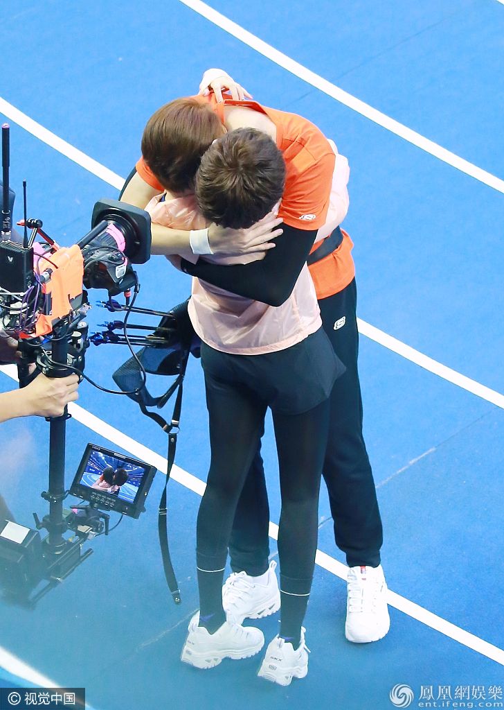 2019年11月2日,上海,于小彤、陈小纭合体现身第二届超新星全运会。于小彤、陈小纭节目录制中甜蜜相拥接吻甜又酸,这简直就是在线发糖! 图片来源:YU/视觉