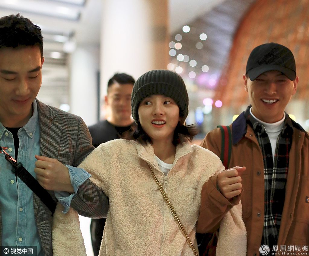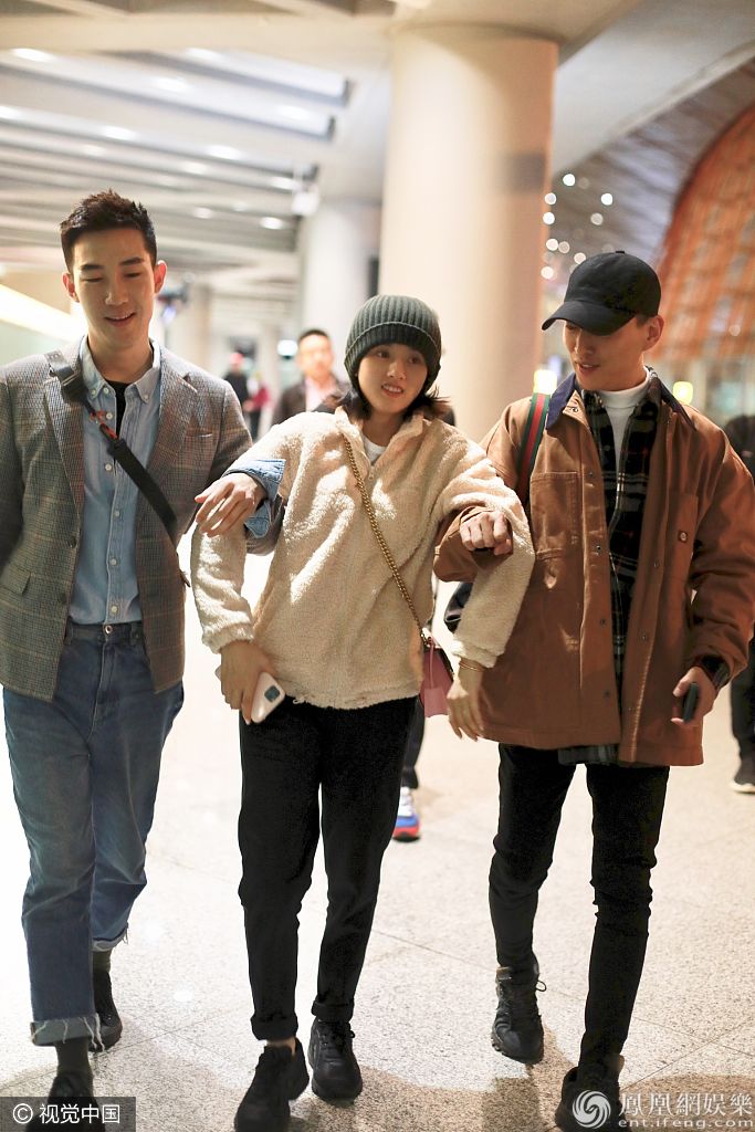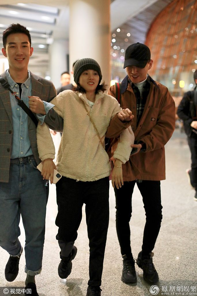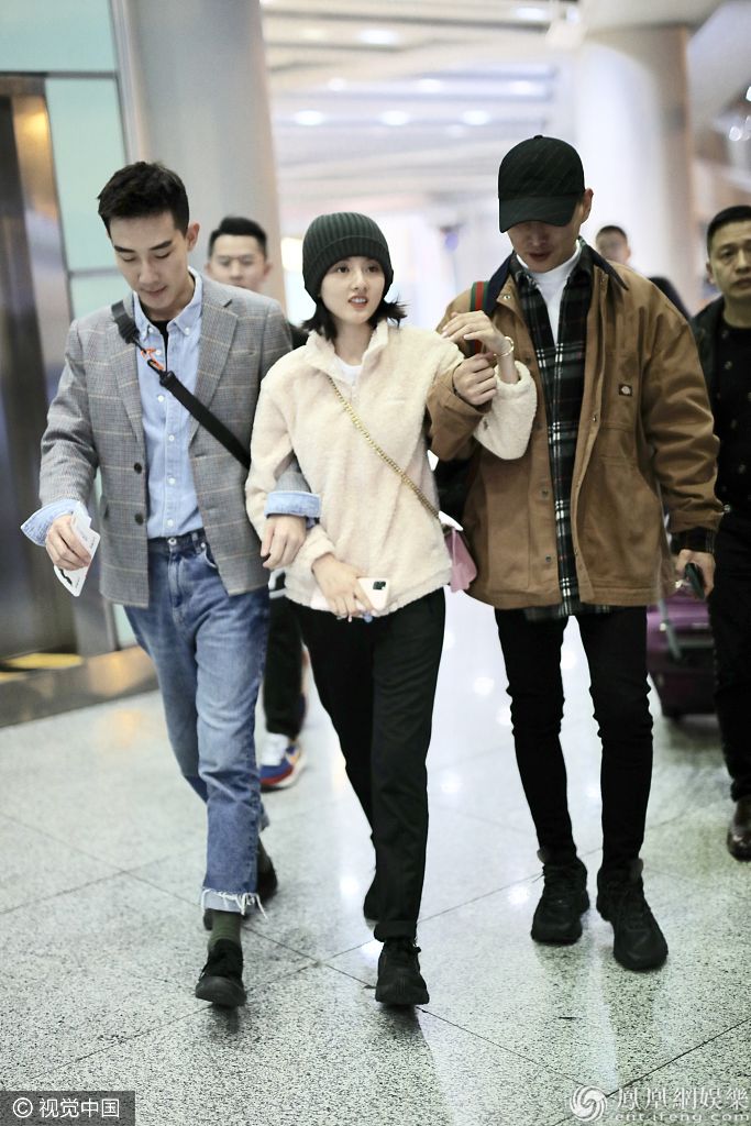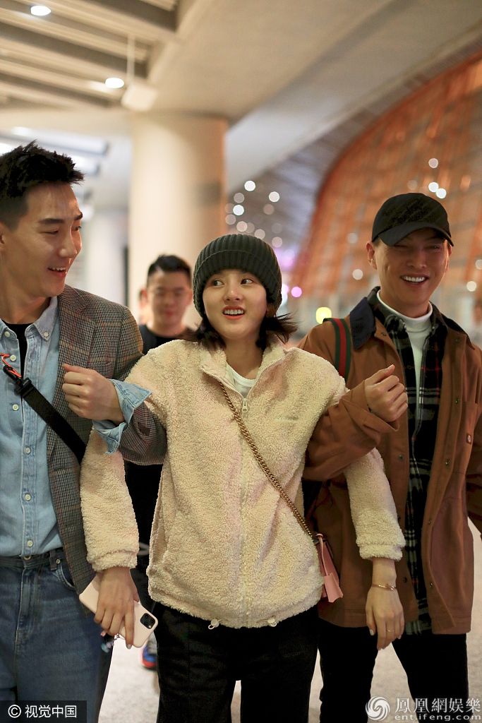 2019年11月2日,北京,宋祖儿现身机场。她戴毛线帽穿羊羔毛外套保暖有方,留短发大眼水汪尽显呆萌,获俩助理挽手秒变小妹妹,被俩男友人架着走甜笑超呆萌。 图片来源:B/视觉