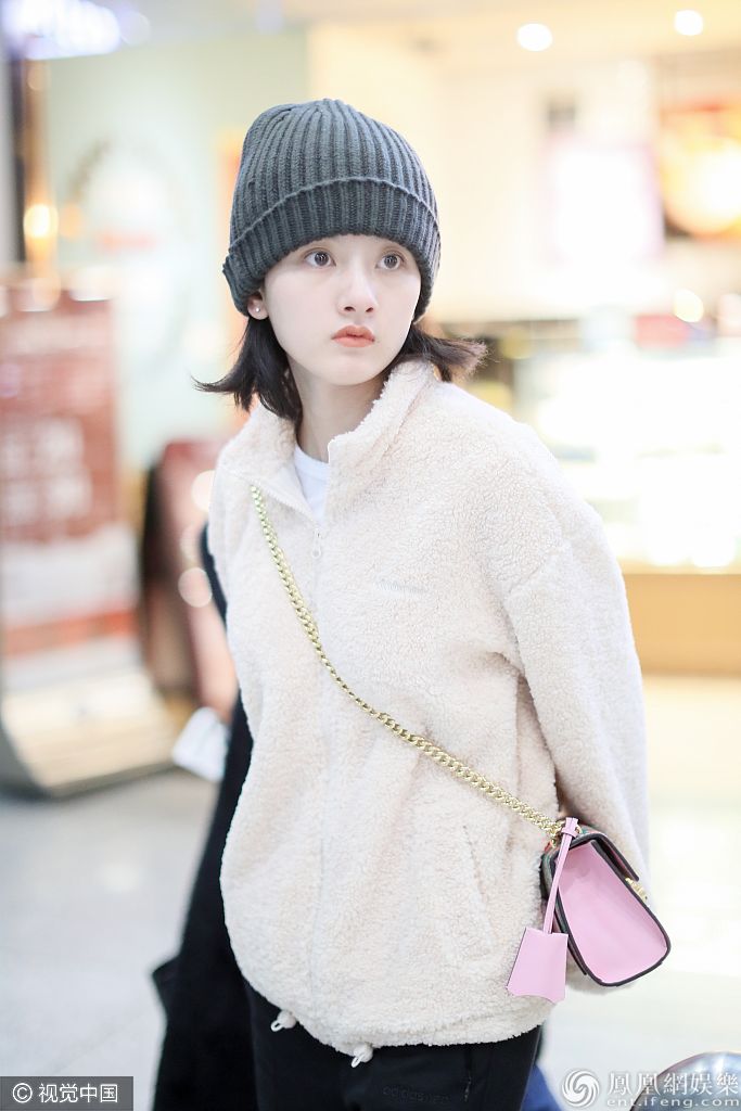 宋祖儿戴毛线帽穿羊羔毛外套保暖有方。 图片来源:玄机/视觉中国