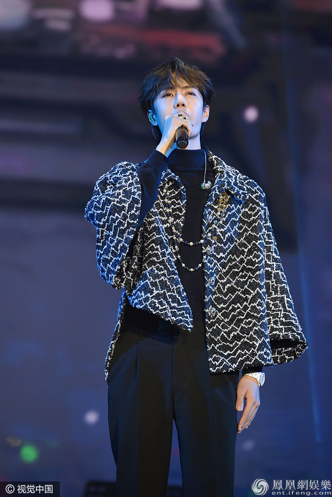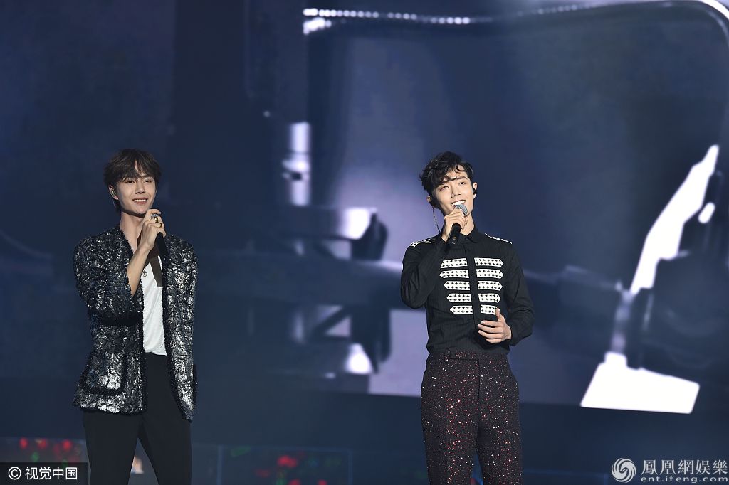 2019年11月1日,南京,肖战、王一博等主演纷纷现身“陈情令国风音乐演唱会”。肖战不规则西装造型配羊毛卷发型帅气之余尽显呆萌乖巧,与王一博现场有爱合唱《无羁》,眼神互动满满,“博君一肖”组合锁了! 图片来源:视觉