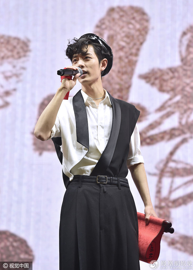 王一博身穿花纹披风热情献唱十分帅气。 图片来源:视觉中国