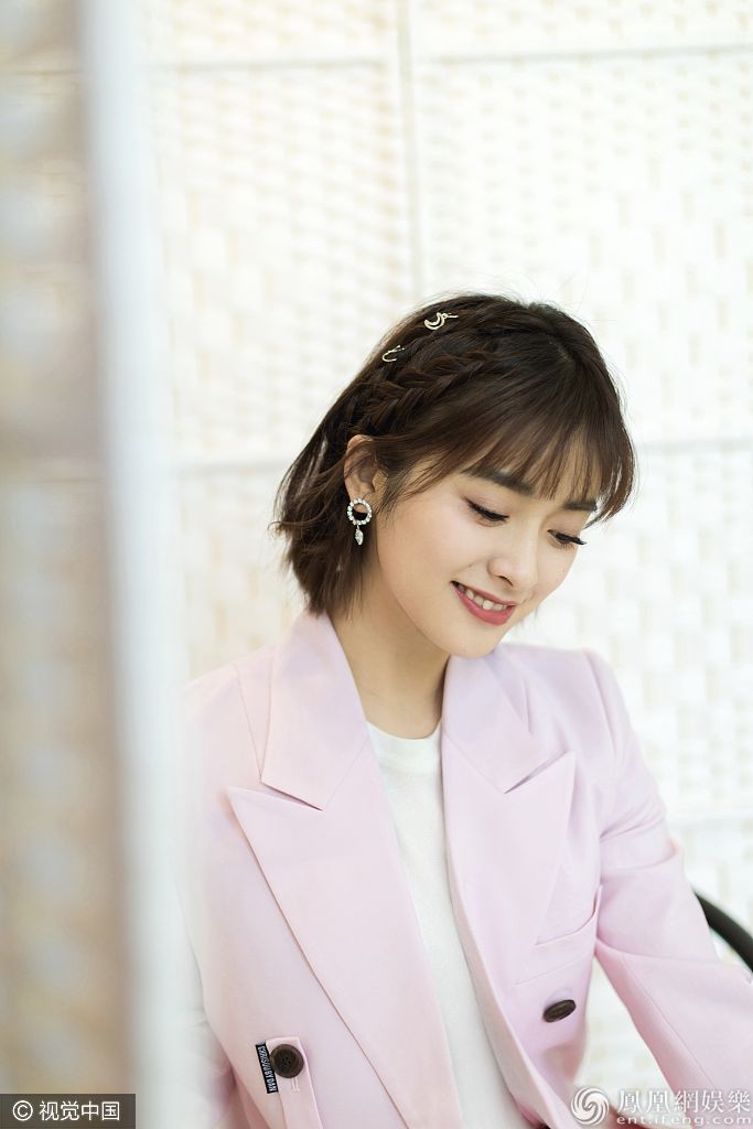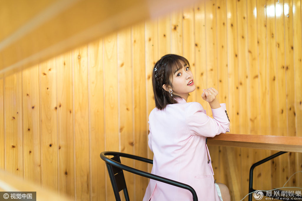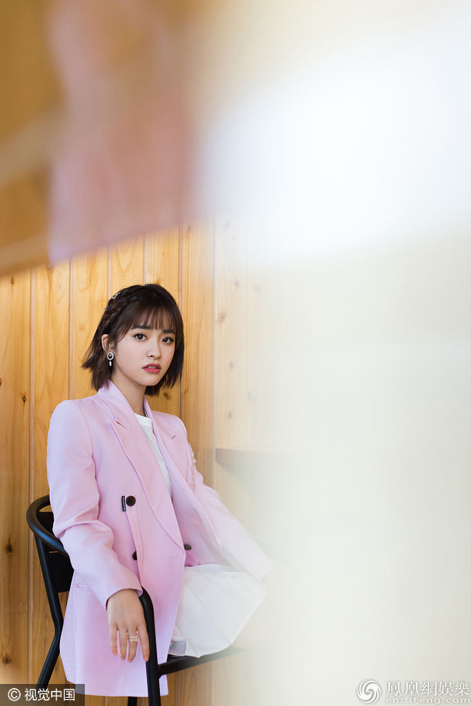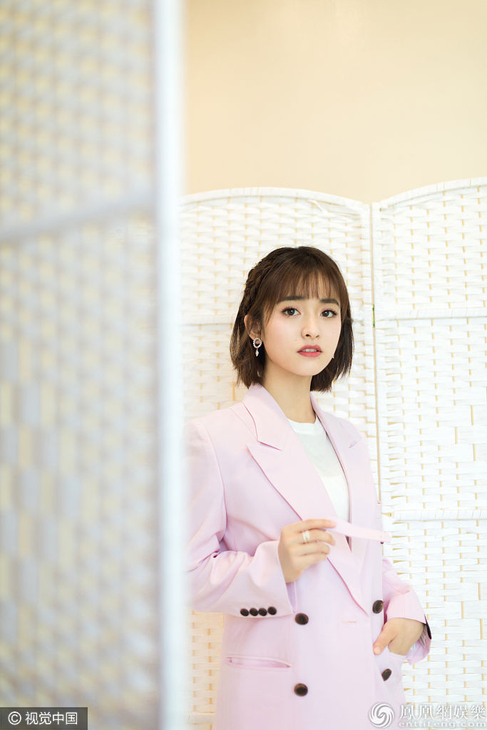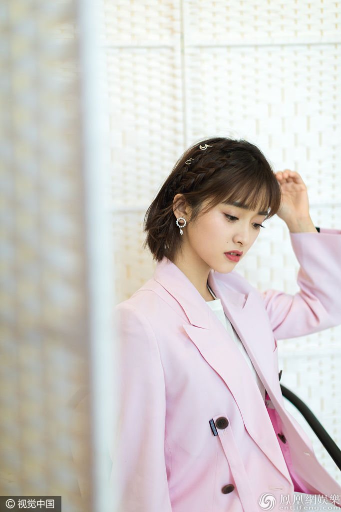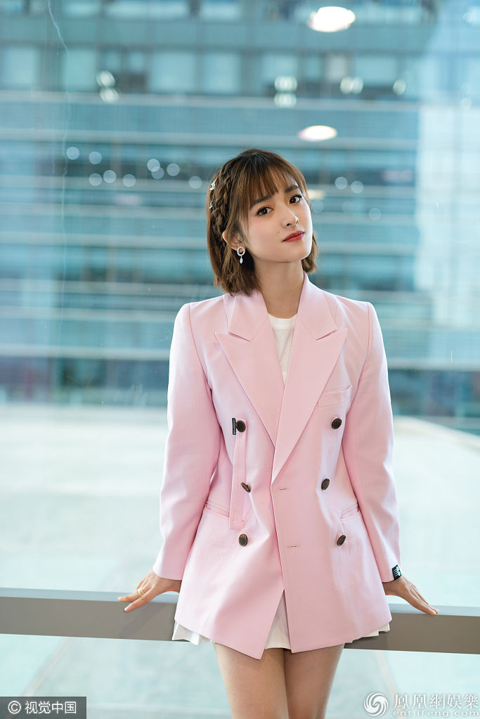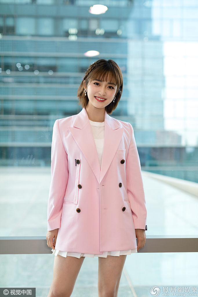 沈月外搭粉嫩西装诠释满满少女感。 图片来源:视觉中国