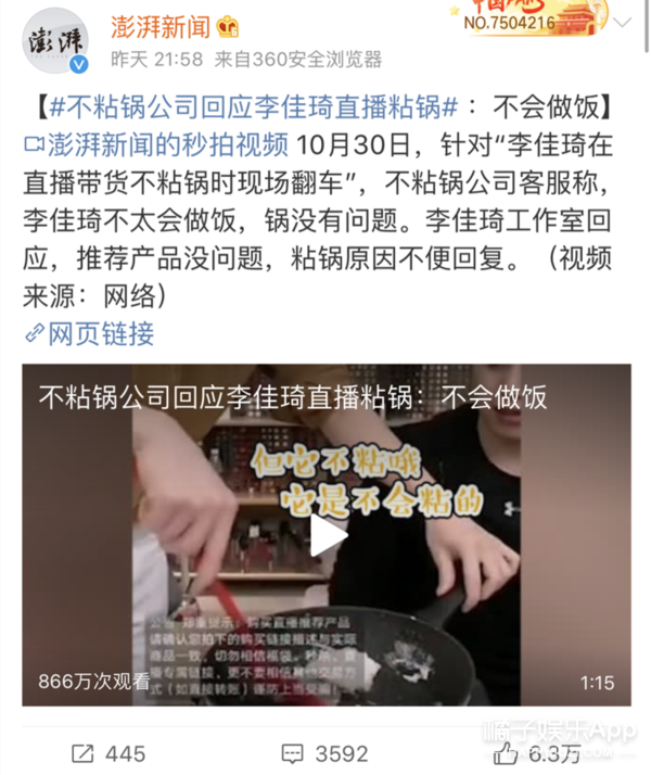 是这样,前几天他直播卖不粘锅,让小助理演示的时候发现,这鸡蛋摊到哪儿粘到哪儿↓