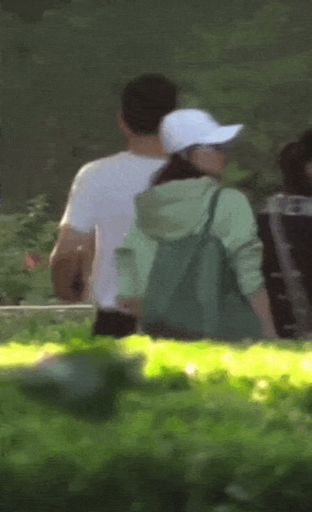 刘诗诗和友人一起进入北京某个小区后,一直待到了天黑才再次现身,只见她边走边低头玩着手机,和一名高大的白衣男子一起走了出来。