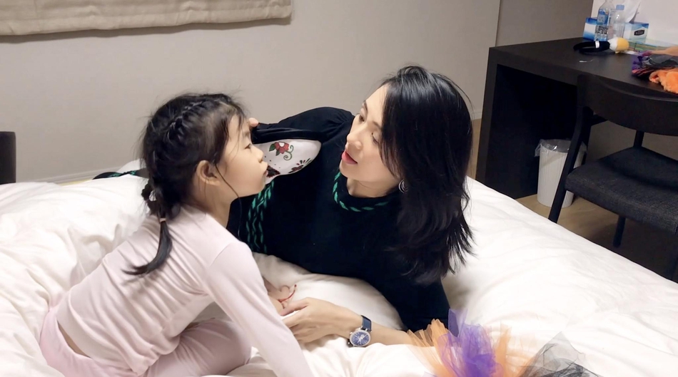 章子怡买来“魔鬼”面具“吓”醒醒,没想到醒醒毫不畏惧,还和妈妈比鬼脸,母女互动温暖极了。