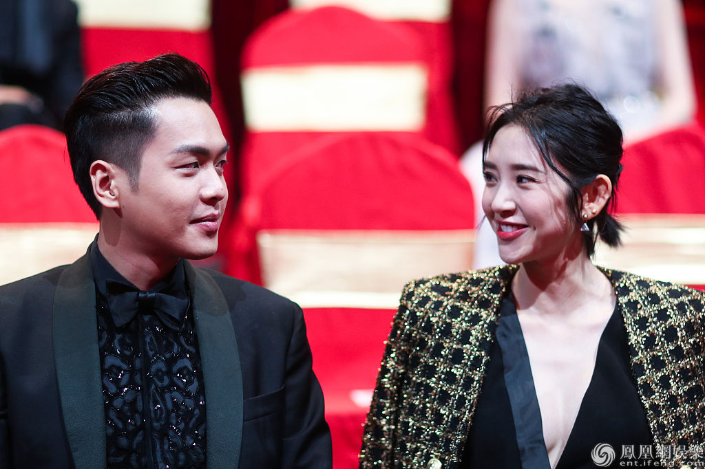 张若昀和女友唐艺昕出席2017国剧盛典甜蜜对视。