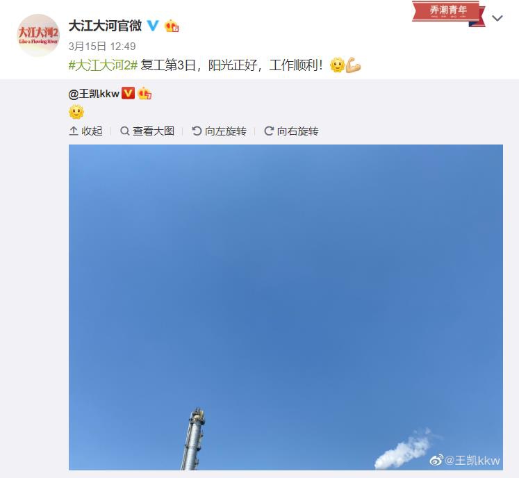 随后,《大江大河》官方转发宣布《大江大河2》已经复工。