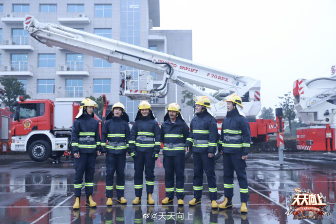 节目最后更是放出大招,在大家于食堂就餐时毫无征兆地突报三级火警,开始紧急模拟演习。黄晓明听到火警响起的瞬间,一秒放下餐具立即跟着所有消防员奔向现场。模拟的现场是化工厂大火,真火燃烧的同时还伴有爆炸,救火过程中更是动用了登高车、隔热服等各种专业器具和服装,黄晓明和天天兄弟究竟能否顺利圆满完成灭火任务呢?更多精彩内容让我们共同期待本周日晚十点的《天天向上》吧!