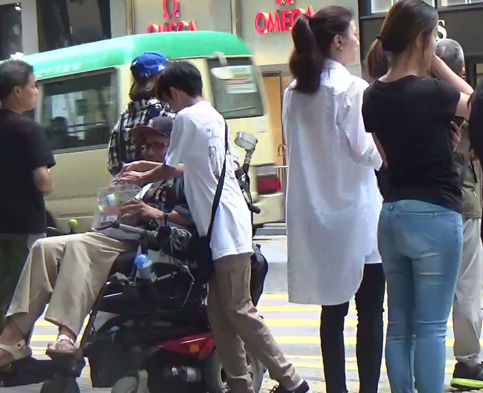回家时,看到路边的乞讨者,袁咏仪当即掏出百元大钞让魔童捐出,十分有爱心。