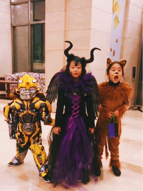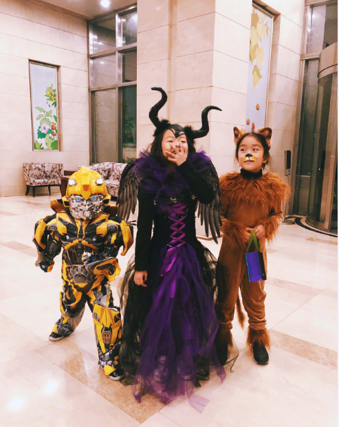 11月1日,谢楠晒出儿子吴所谓万圣节装扮的照片,并配文称:“自己一个人就是顶天立地Bumble Bee,组合在一起就是三头身的小迷弟,这个身高差太凶残了