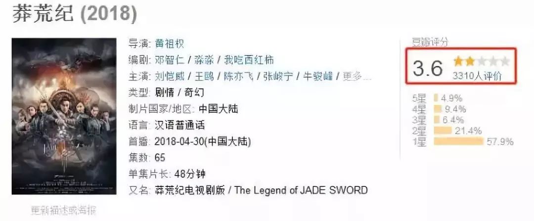 已经播出的《莽荒纪》收视惨不忍睹。首播当日收视率不足 0.1,并长期徘徊在 0.1 上下,市场份额也难以突破 0.1。