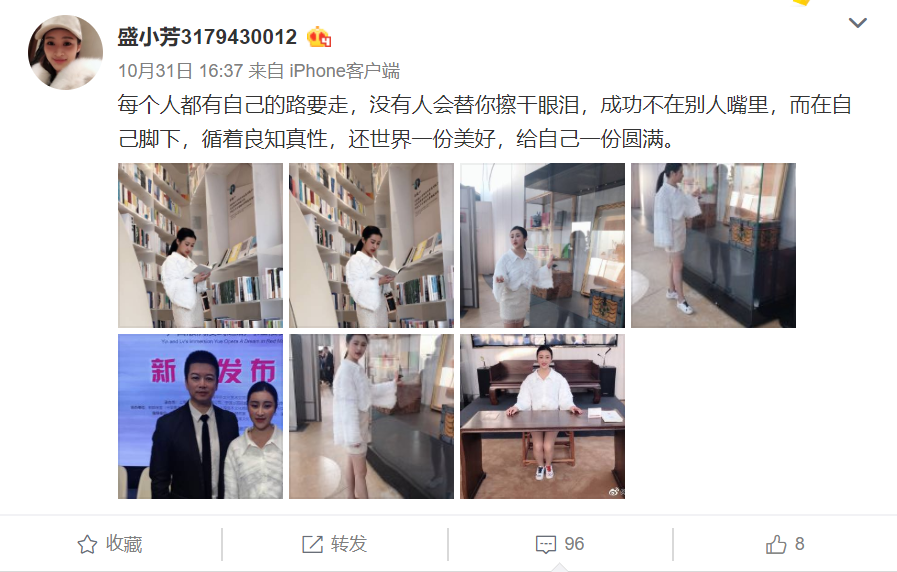 昨晚四点三十七分,小璐的表妹盛小芳在社交平台发文:每个人都有自己的路要走,没有人会替你擦干眼泪,成功不在别人嘴里,而在自己脚下,循着良知真性,还世界一份美好,给自己一份圆满。