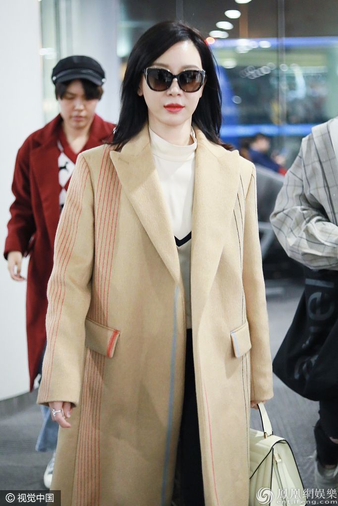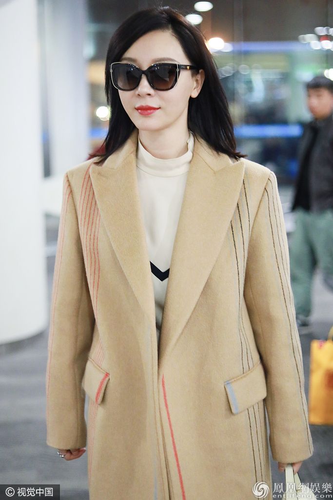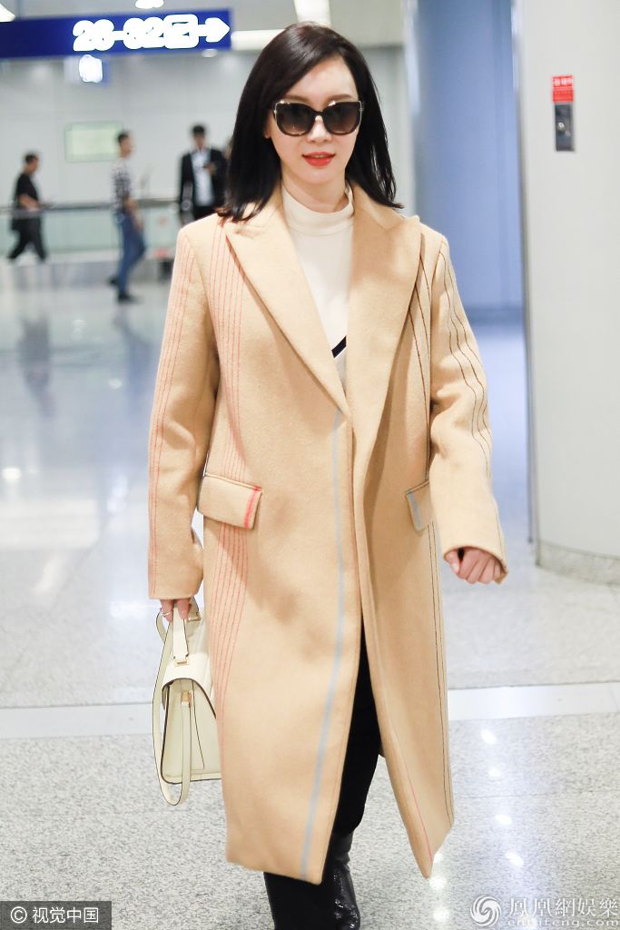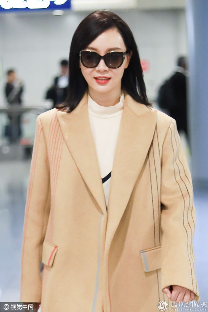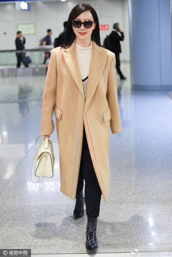2019年11月1日,北京,陈数现身机场。她戴黑超穿卡其色大衣美丽迷人,脚踩短靴魅力开走,又美又飒女神下凡。 图片来源:c/视觉