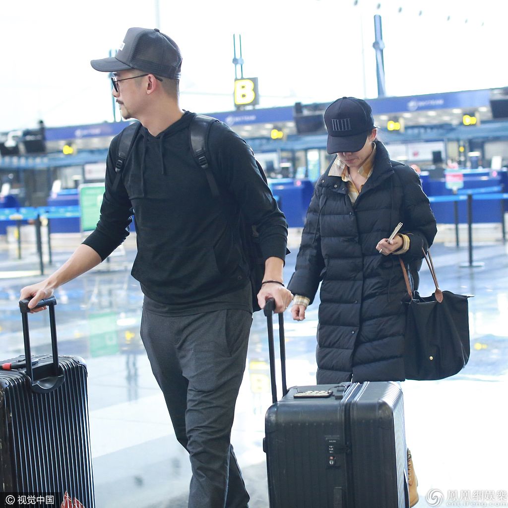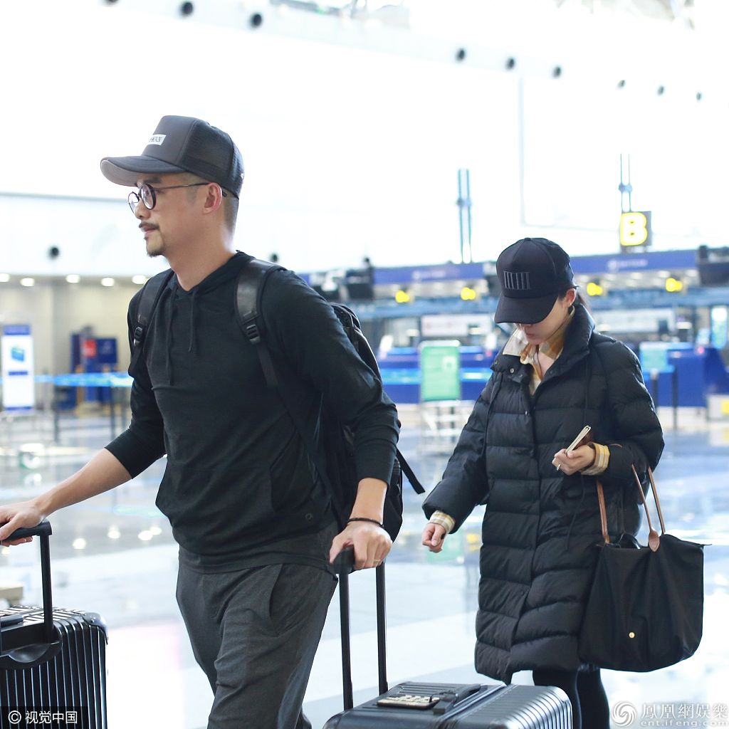 杨子姗和老公低调现身机场。 图片来源:ALO/视觉中国