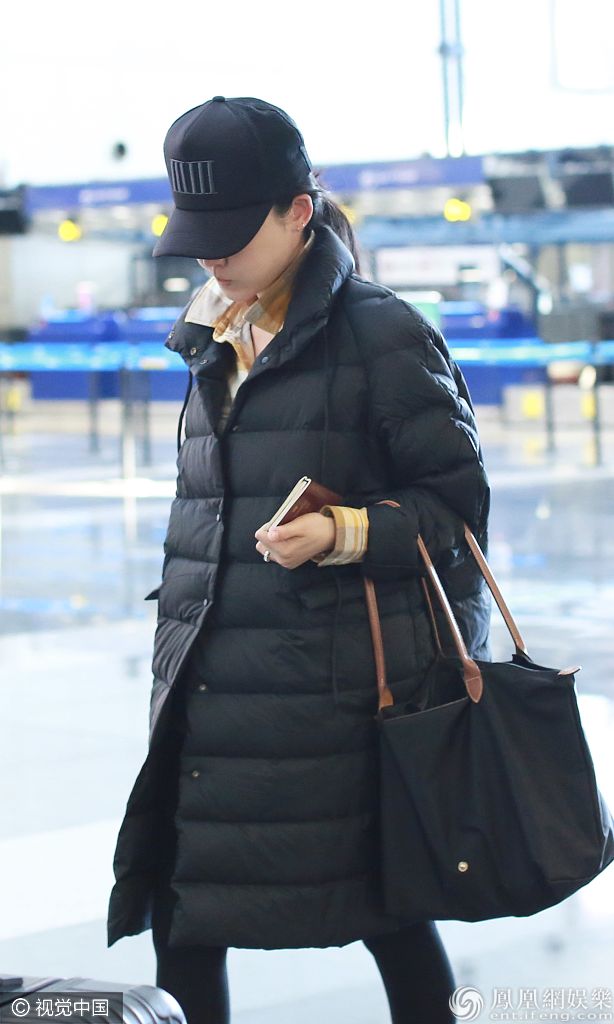 杨子姗身穿宽松羽绒服,这么注重保暖,难道是有好事发生。 图片来源:ALO/视觉中国