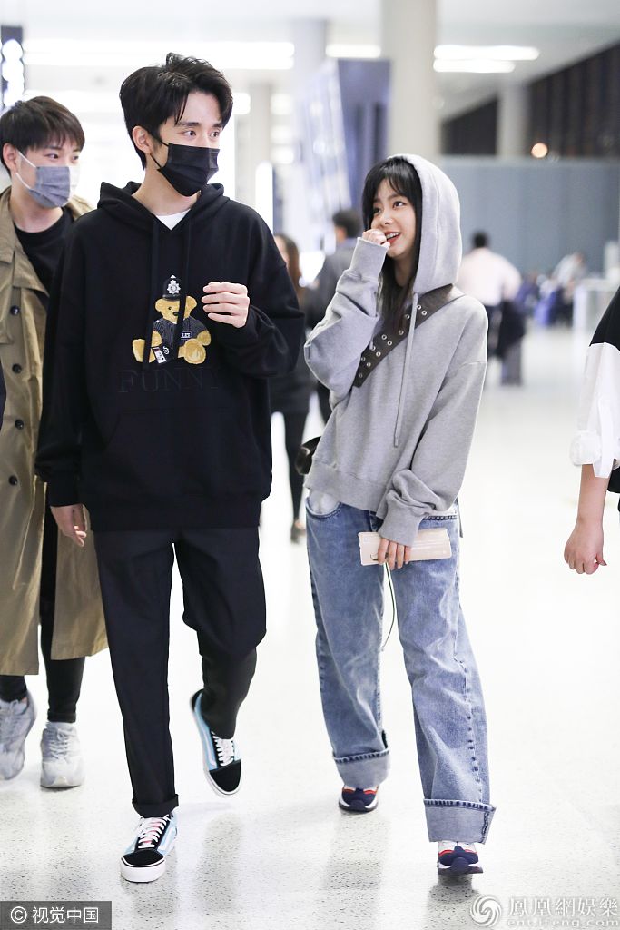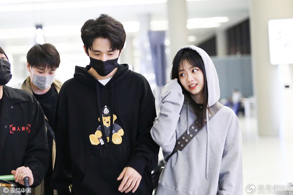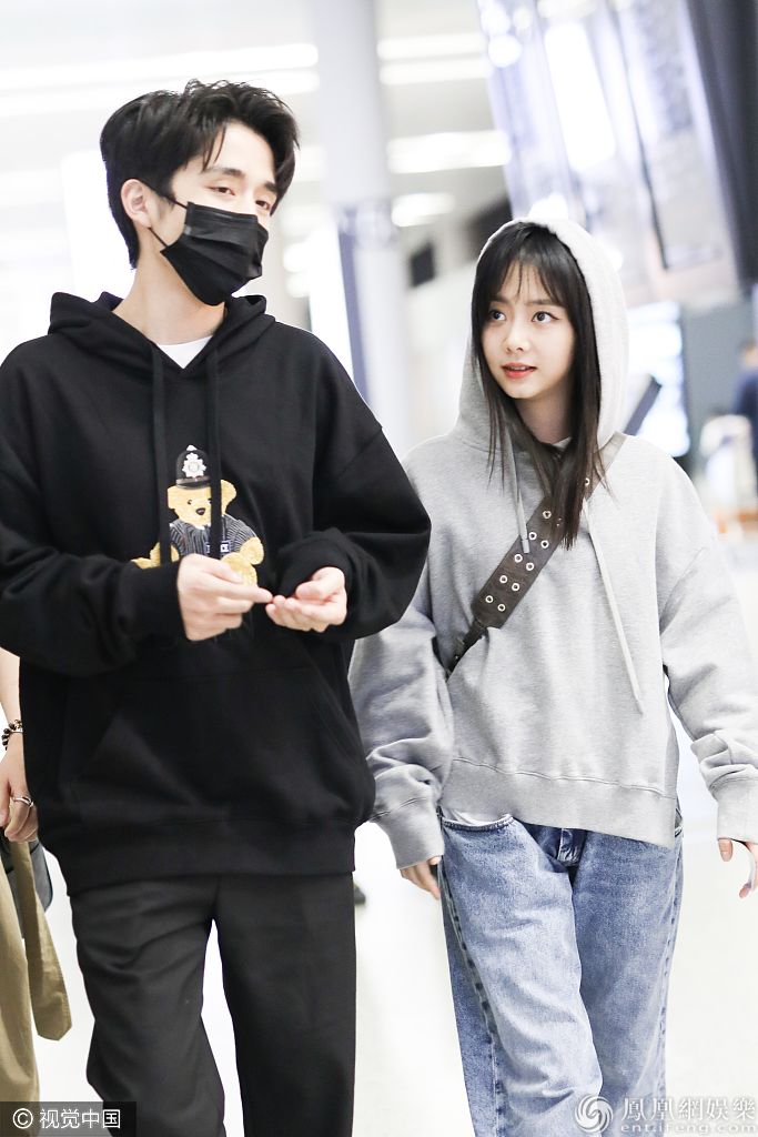 2019年10月31日,上海,谭松韵、张新成现身机场。谭松韵戴卫衣帽脸蛋圆圆幼态十足,生图超能打少女颜让人心动,机场偶遇张新成,两人有说有笑关系铁。 图片来源:6月boy/视觉