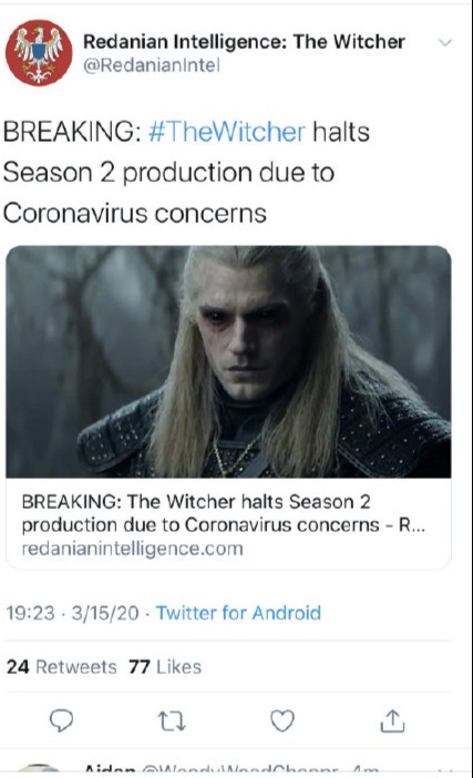 据了解,《猎魔人》第二季原计划今年8月拍完,但现在看来会延后。目前该剧至少要停拍两周,如果疫情持续不见好转,可能会继续停拍。