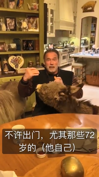 近日,好莱坞影星阿诺德·施瓦辛格发视频呼吁大家不要出门,在家待着不要聚