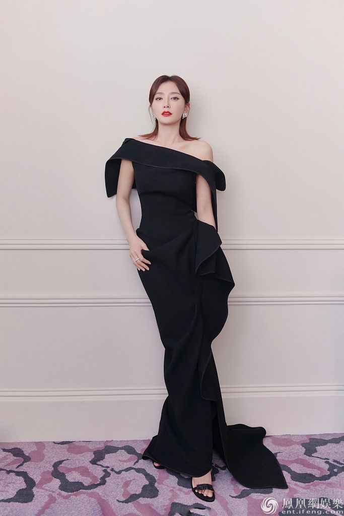 秦岚这套黑色裙装美艳大气。 图片来源:视觉中国
