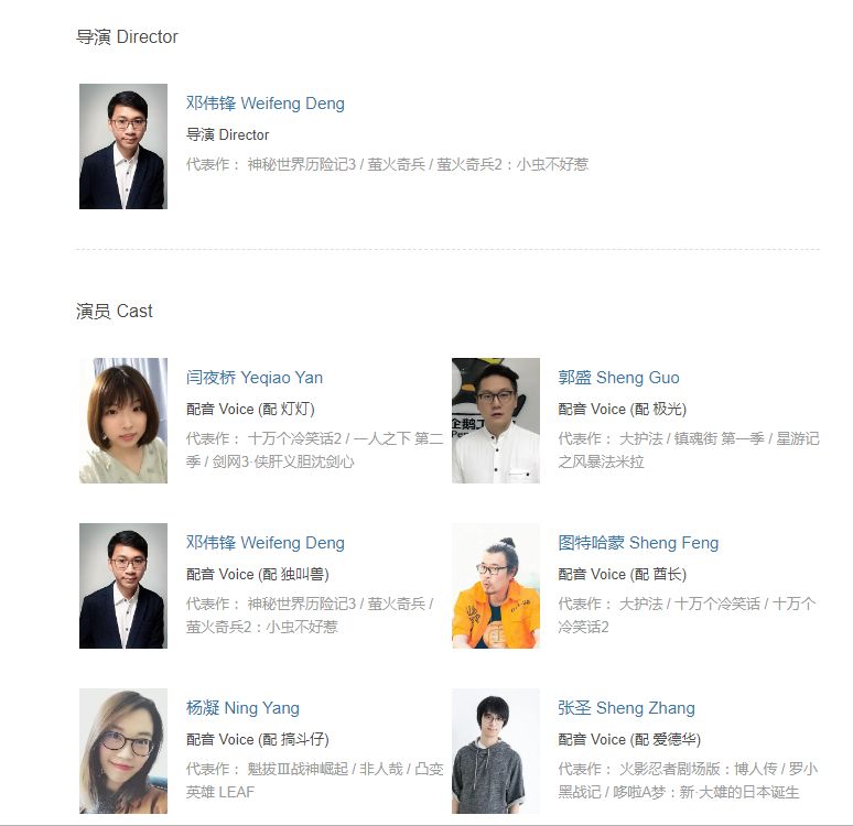 演员参与过《大护法》、《十万个冷笑话》的配音,但基本上都不是主要角色。