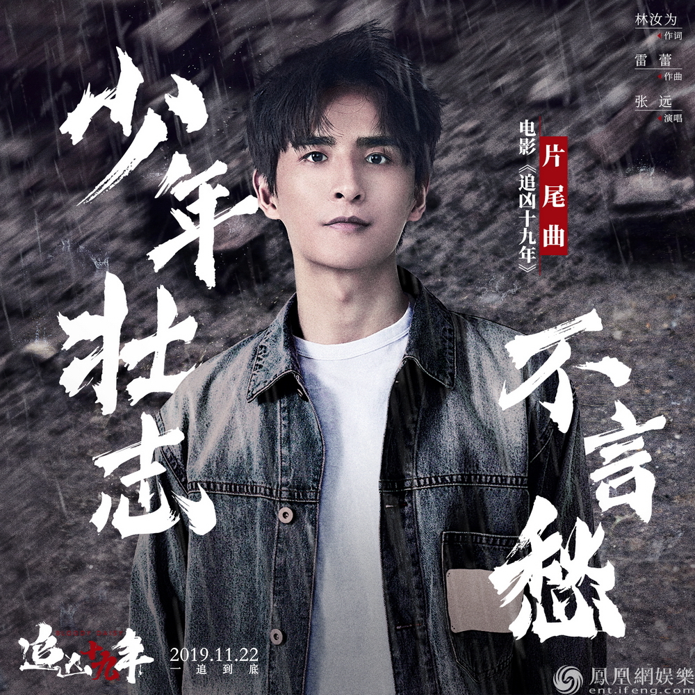 “历尽苦难痴心不改,少年壮志不言愁。”刑侦题材影片《追凶十九年》上映在即,片方惊喜发布由张远献唱的电影片尾曲《少年壮志不言愁》,当深情的旋律奏起,张远用饱满的演唱带领听众走进警察的内心世界,致敬青春沸腾的无悔“藏蓝岁月”。经典曲目重新编曲演绎,首批听众纷纷感慨:“一秒泪目”、“张远走心了”,并表达对影片上映的更多期待。电影《追凶十九年》由张猛监制,徐翔云执导,王泷正、宋宁峰领衔主演,黄璐特别出演。影片将于2019年11月22日公映。
