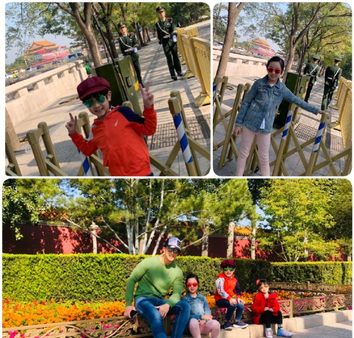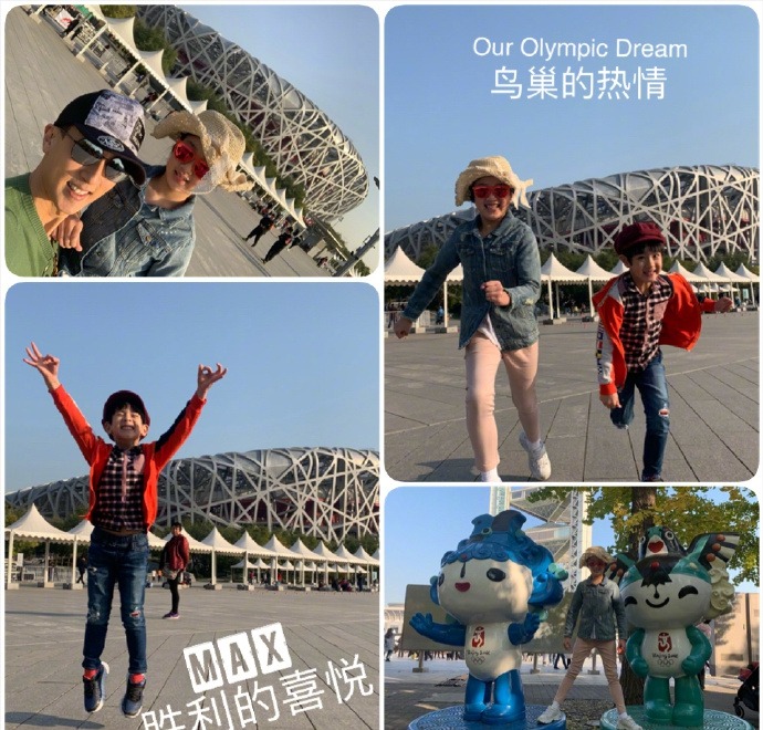 10月29日,吴尊晒出带NeiNei和Max游玩北京的照