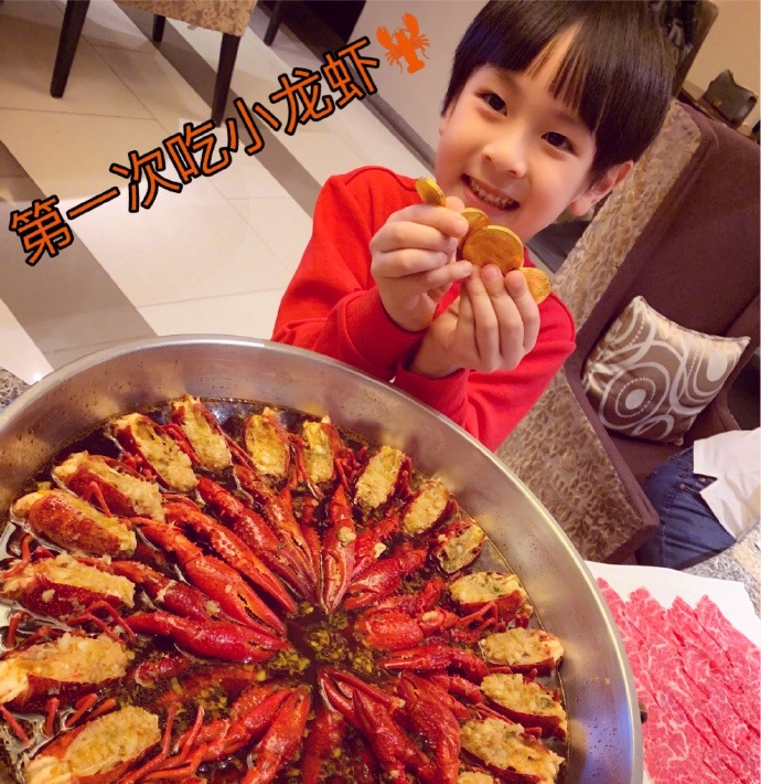 max第一次吃小龙虾。