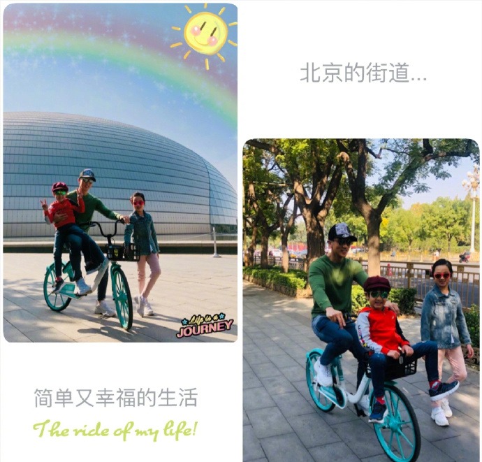 吴尊骑共享单车。