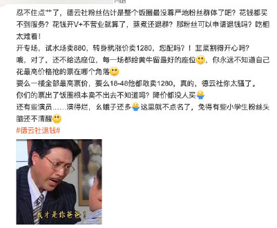 此外,还有粉丝爆料称,原本德云社开专场卖880的票价变成1280还不给选座位,希望德云社退钱。