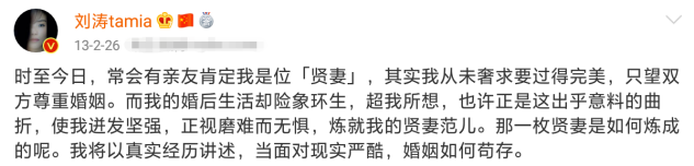 刘涛的这篇长博文很有效果,为她自己带来了更多热度,立足了“贤妻”人设,同时也让《贤妻》这部剧充满了噱头。