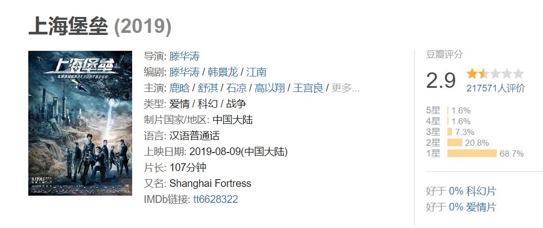 2018-2019豆瓣平均分:2.8