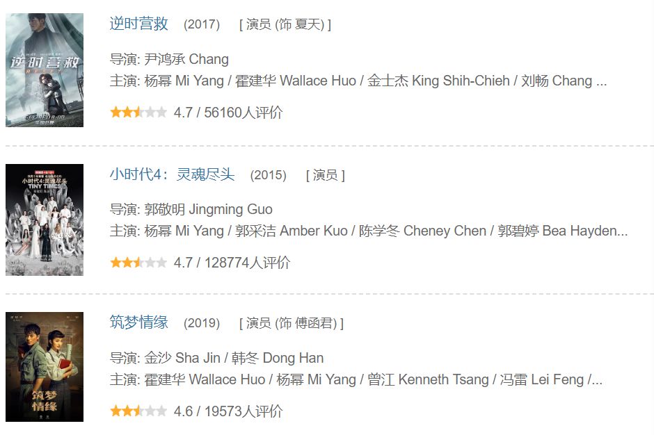 最后的结果自然是大部分片子在豆瓣都没有及格,只余她空口喊出的那句“我要做人民的演员”。
