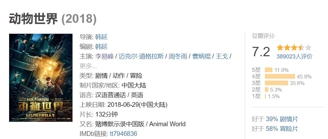 但也是谁也没想到,这一群人里第一个从流量红利中清醒过来的,也是李易峰。 他突然在大众面前消失了整整一年。 这个选择其实对于一个流量明星来说,算是一种极大的冒险,他是那一群人里第一个迈出这一步的人。 就像导演韩延说的,当时找了很多流量演员,只有李易峰愿意为了《动物世界》空出一年的档期。