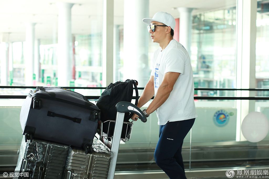 刘畊宏变成了老父亲一个人推行李。 图片来源:ALO/视觉中国